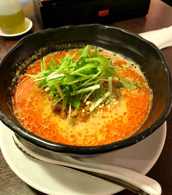 始皇帝は担々麺専門店という名の通り、メニューは担々麺しかなかった(と思う)。この店は担々麺とラーメンがある。一度ラーメンを頼んでみたが激マズだった。しかし担々麺は極上だ。最近は元祖担々麺は担いで売られたメニューだから汁なしで、陳建民が日本人に合わせて汁ありにしたということで、汁なし担々麺があちこちで食べることができるようになってきた。この店は汁なしと汁ありの中間ぐらいの線を狙った担々麺だ。スープが少なめでドロッとしている。