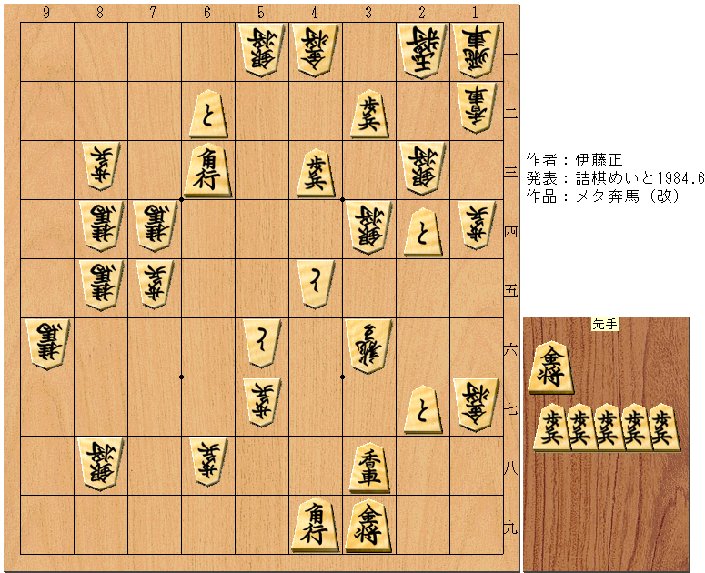 「詰棋めいと」誌創刊号に発表され、話題になった傑作「メタ奔馬」の修正図を伊藤正さんからいただきました。